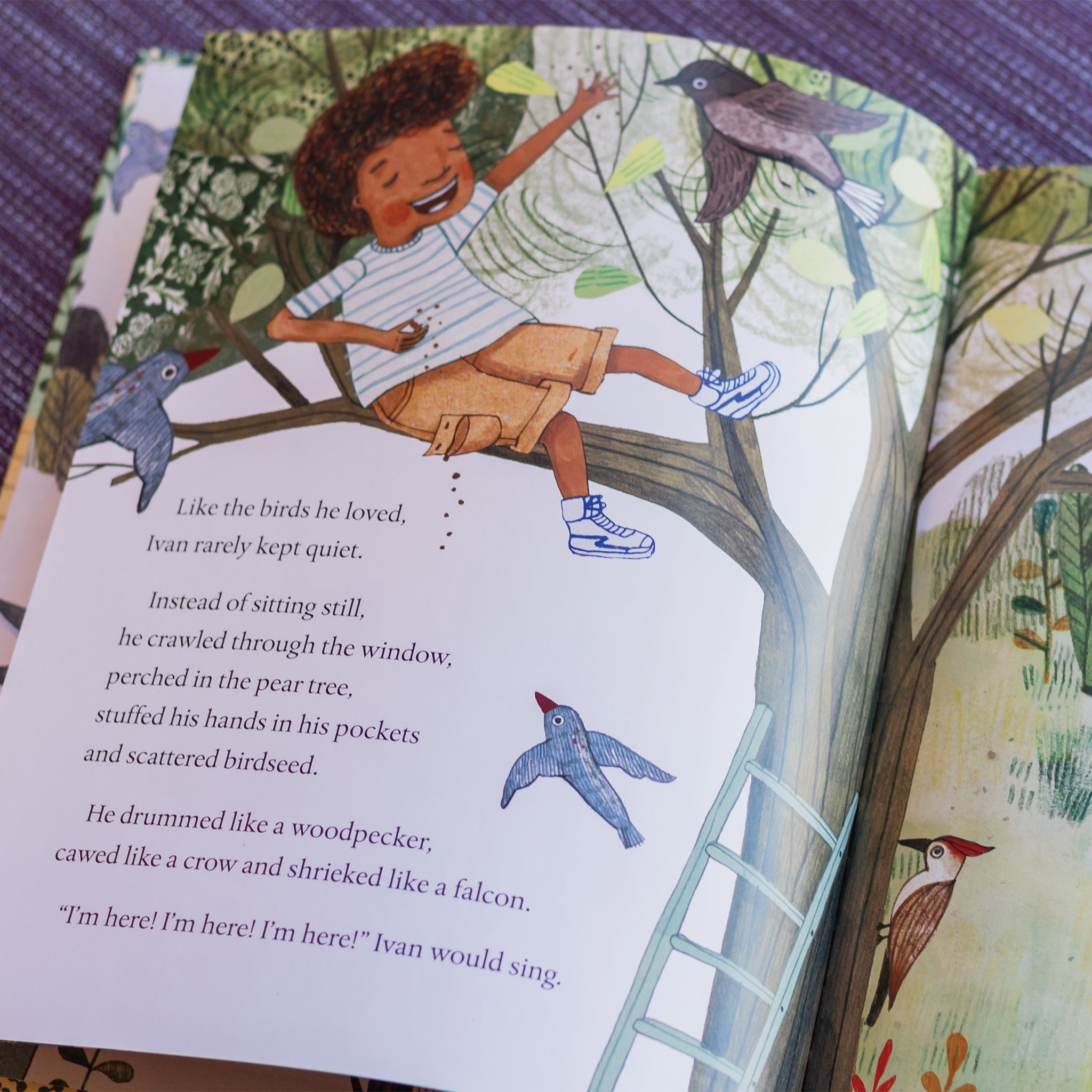 Can you hear the music all around you? In this touching picture book, Ivan finds healing and hope in nature’s music and beauty while experiencing the early stages of his parents’ separation. When he realizes that birds sing their enchanting songs both here at his mom’s house and thereat his dad’s house, Ivan takes his first step toward finding the freedom and joy to sing along, whether he’s here or there. This tale of personal growth will provide a much-needed mirror for children in times of change — and an important reminder for all that there’s beauty everywhere you look.